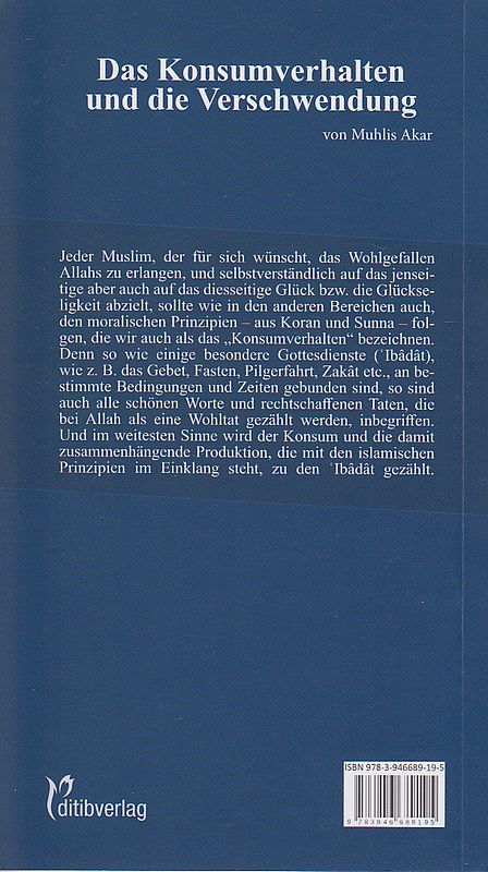 Das Konsumverhalten Und Die Verschwendung Yazar: Muhlis Akar Yayınevi: Ditibverlag ISBN: 9783946689195 Boyut: 10,5x18,5 cm Sayfa Sayısı: 65