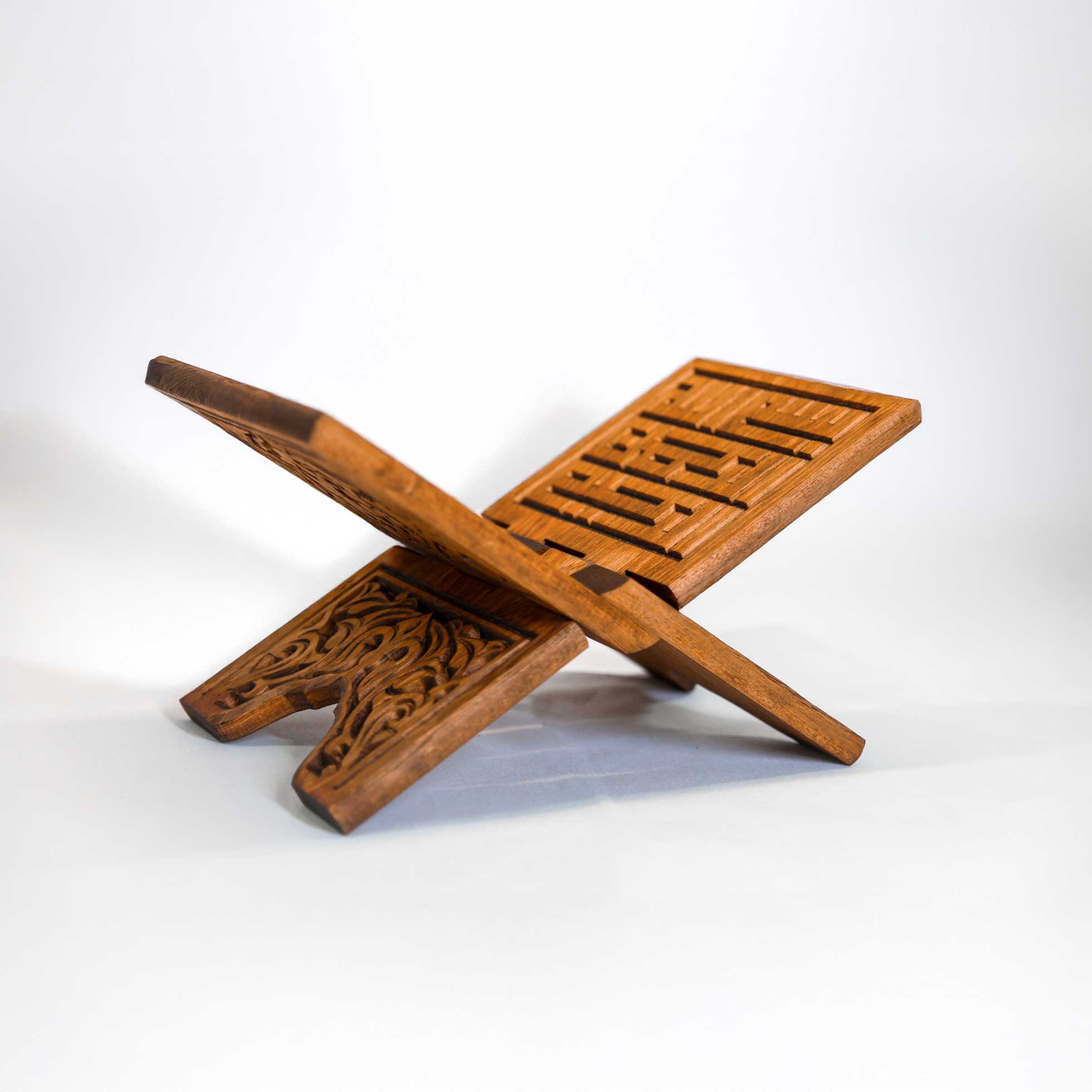 Ürün Kizilçam agacindan selçuklu deseni cnc oyma teknigi islenerek masaüstü olarak tasarlanmis olup yekpare agaçdan açilir kapanir tarzda öne dogru...