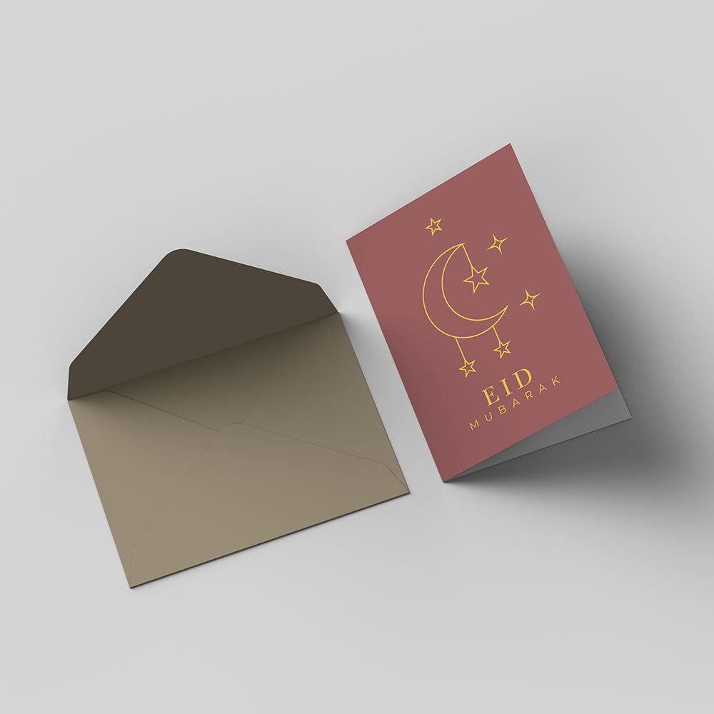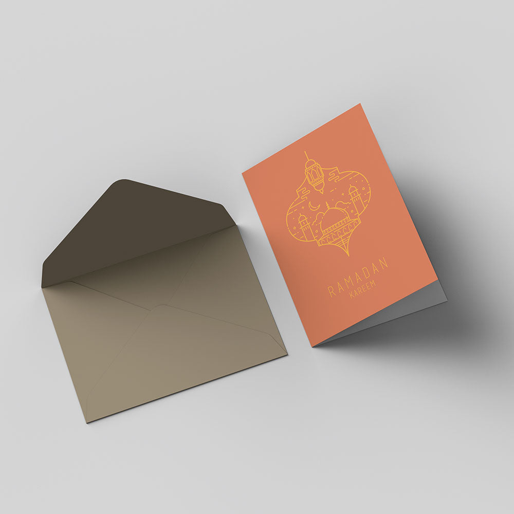 Grußkarten 4er Set Modernes Set mit vier minimalistischen Grußkarten in warmen Erdtönen. Die filigranen Gold-Illustrationen von Moscheen und Mond-Symbolen eignen...