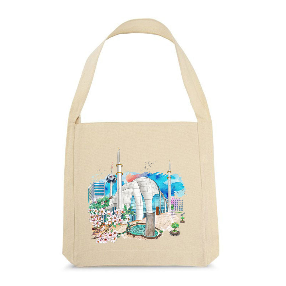 Jutebeutel "Zentralmoschee Köln" Nachhaltiger Baumwollbeutel mit farbenfrohem Print der Kölner Zentralmoschee im Aquarell-Stil. Ein praktischer und zugleich bedeutungsvoller Begleiter für...