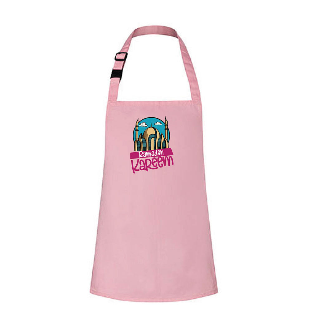 Kinder-Kochschürze "Ramadan Kareem" – Rosa Farbenfrohe Schürze für kleine Küchenhelfer mit einem verspielten Moschee-Motiv und dem Schriftzug „Ramadan Kareem“. Ideal...