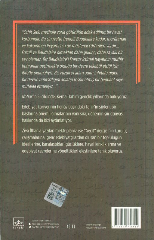 Notlar 5 - 1950 Öncesi Şiirler ve Ziya İlhan`a Mektuplar | |