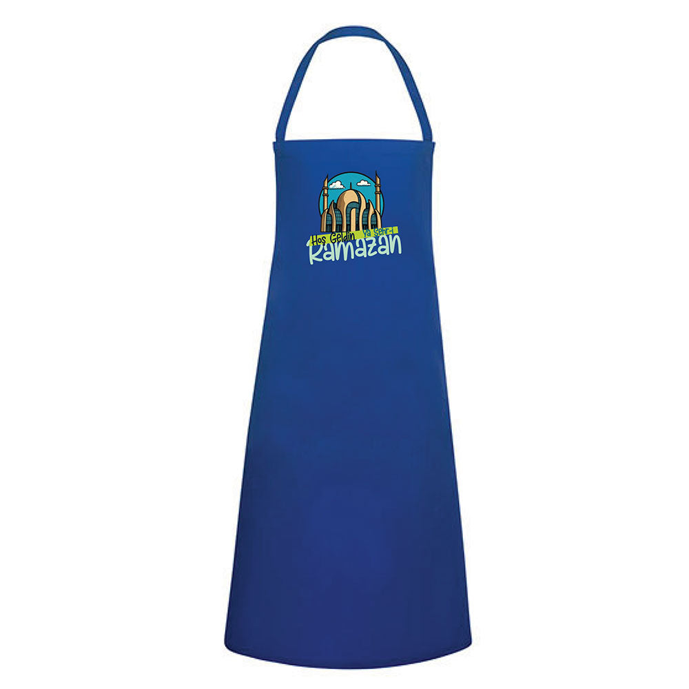 Klassische Küchenschürze für Erwachsene mit traditionellem türkischem Ramadan-Gruß. Verbindet Funktionalität mit kultureller Wertschätzung beim Kochen für Gäste und Familie.