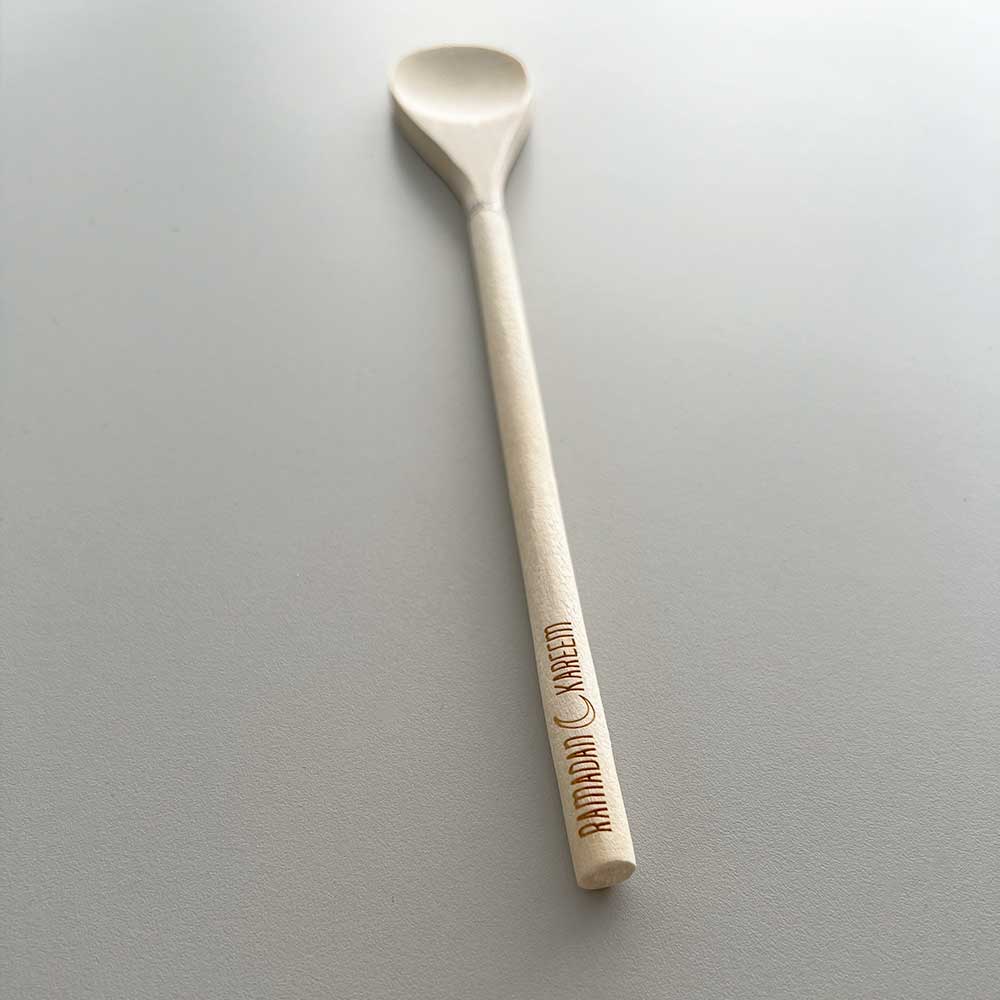 Schlichter und funktionaler Kochlöffel aus hochwertigem Holz. Ein unverzichtbares Utensil für die Zubereitung traditioneller Gerichte zum Iftar und Sahur – langlebig und materialschonend für deine Töpfe.
